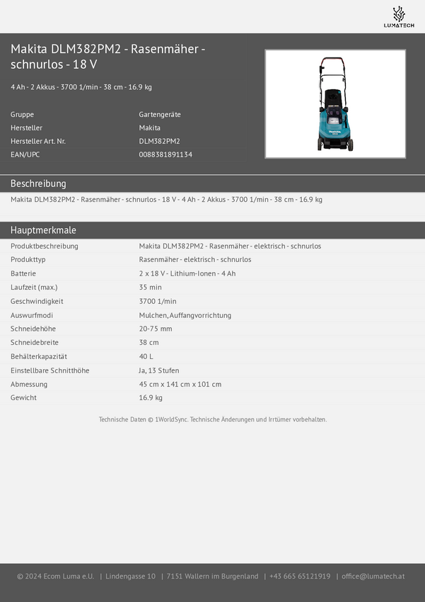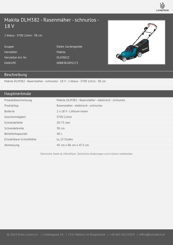 Makita akumulatorowy Kosiarka bez akumulatora 18 V Maksymalna szerokość cięcia 380 mm