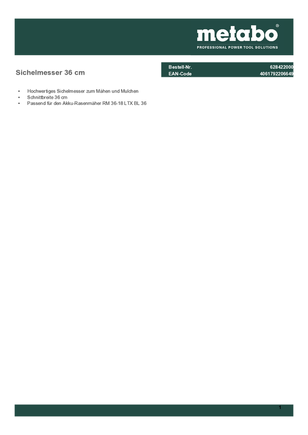 Ostrze wymienne do kosiarki do trawy Metabo 628422000 1 szt.