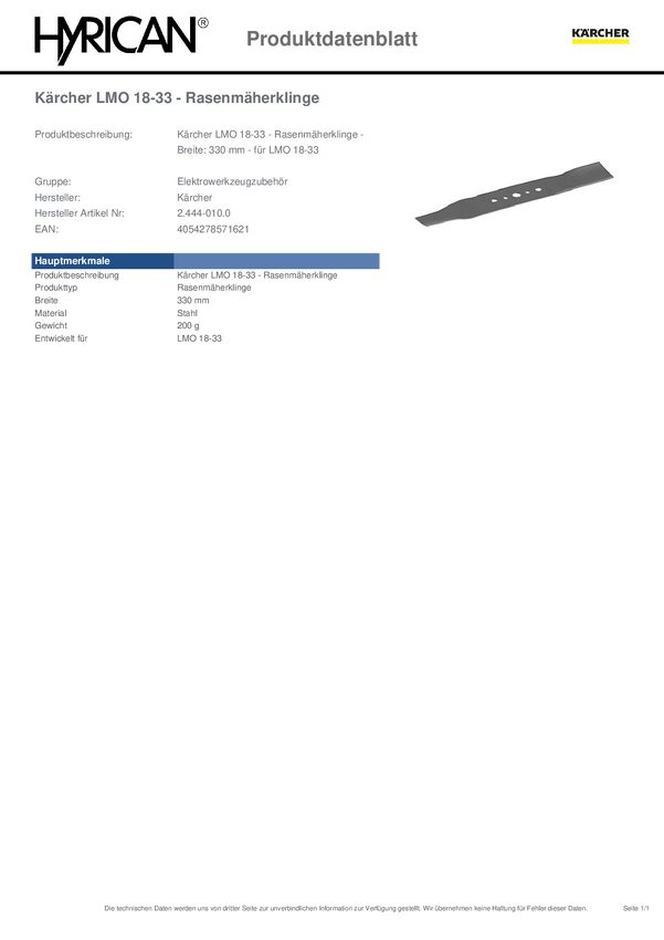 Ostrze wymienne do kosiarki do trawy Kärcher Home & Garden Kärcher 2.444-010.0 1 szt.