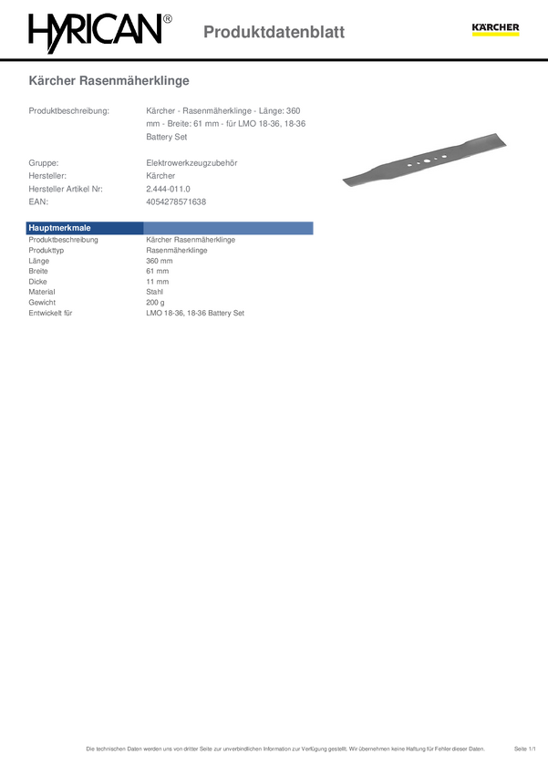 Ostrze wymienne do kosiarki do trawy Kärcher Home & Garden Kärcher 2.444-011.0 1 szt.