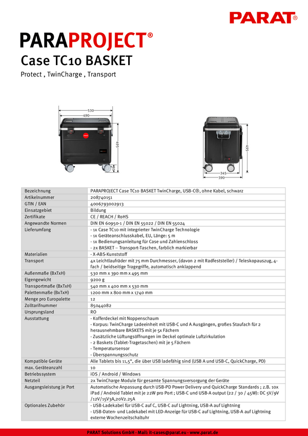 PARAT PARAPROJECT® Walizka TC10 KOSZYK, TwinCharge