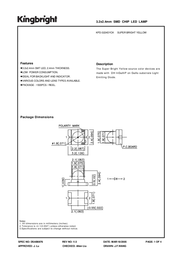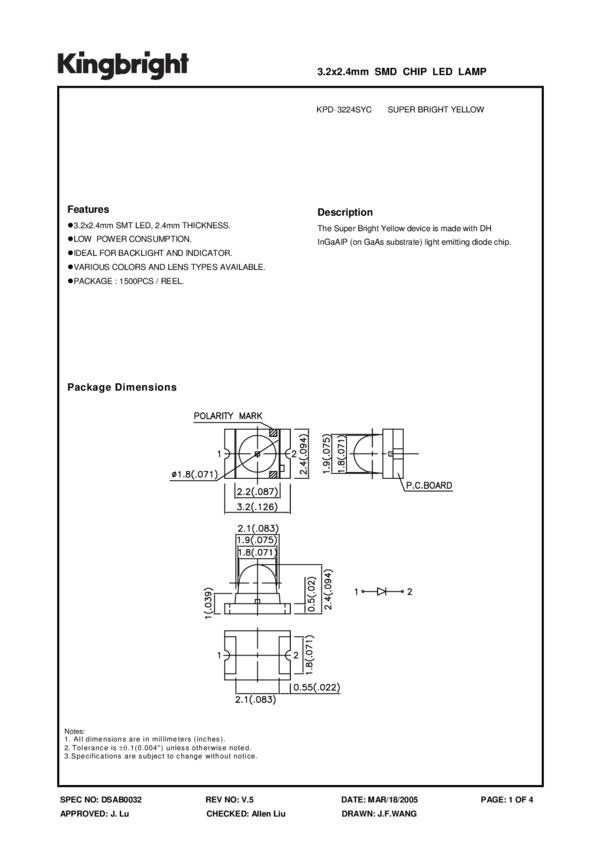 LED Uni-Color Yellow 588nm Chip LED 2-Pin SMD T/R