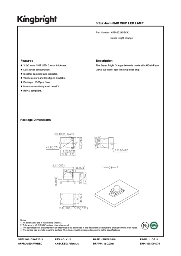LED Uni-Color Orange 610nm 2-Pin Chip LED T/R