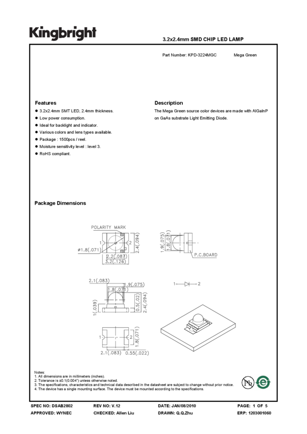 LED Uni-Color Green 520nm Chip LED 2-Pin SMD T/R