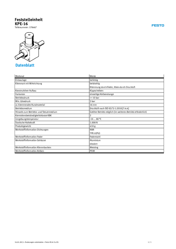 Jednostka zaciskowa FESTO KPE-16 178467