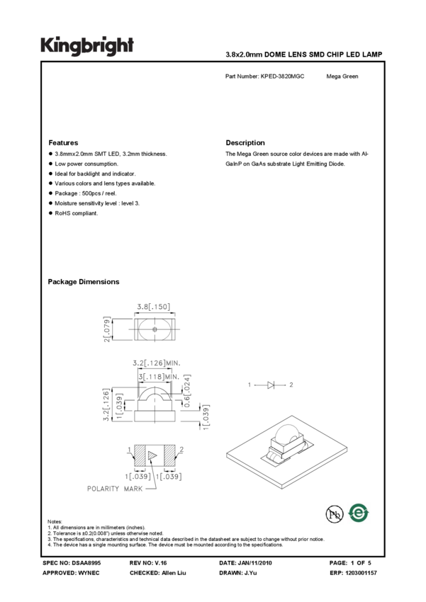 LED Uni-Color Green 574nm Chip LED 2-Pin SMD T/R
