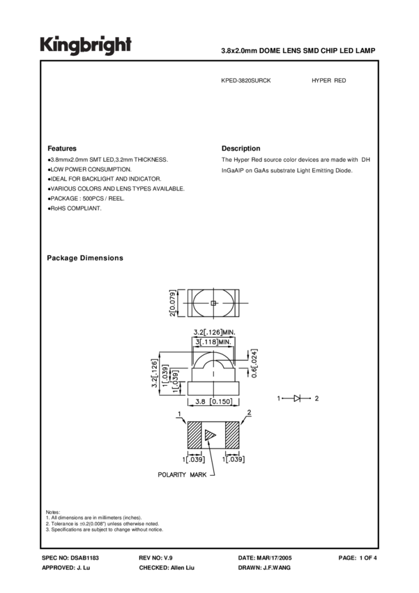 LED Uni-Color Red 630nm Chip LED 2-Pin SMD T/R