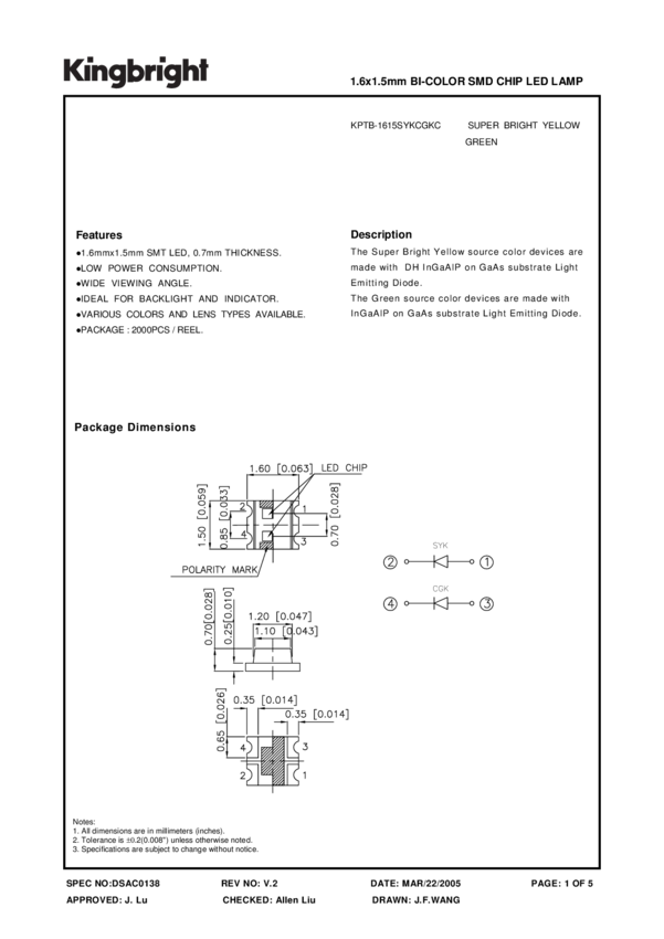 LED Bi-Color Green/Yellow 574nm/590nm Chip LED 4-Pin SMD T/R