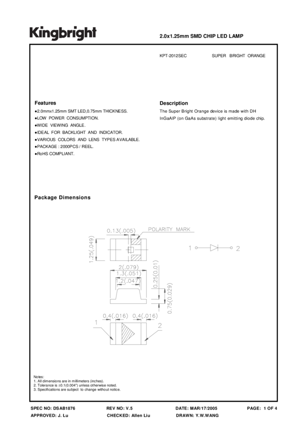 LED Uni-Color Orange 610nm Chip LED 2-Pin SMD T/R
