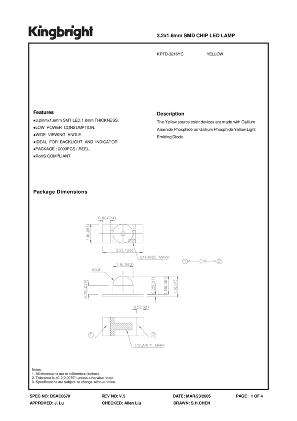 LED Uni-Color Yellow 588nm Chip LED 2-Pin SMD T/R