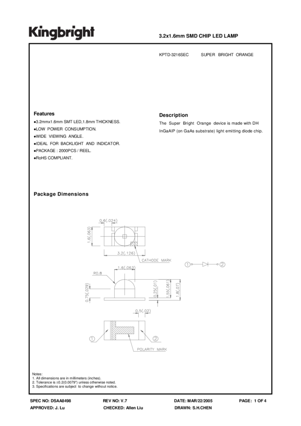 LED Uni-Color Orange 610nm 2-Pin Chip LED T/R