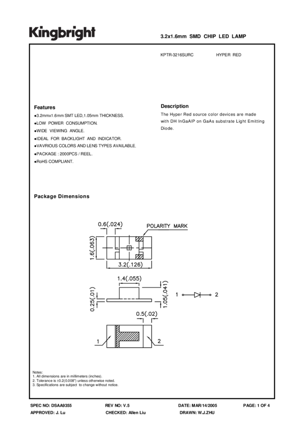 LED Uni-Color Orange 610nm 2-Pin Chip LED T/R