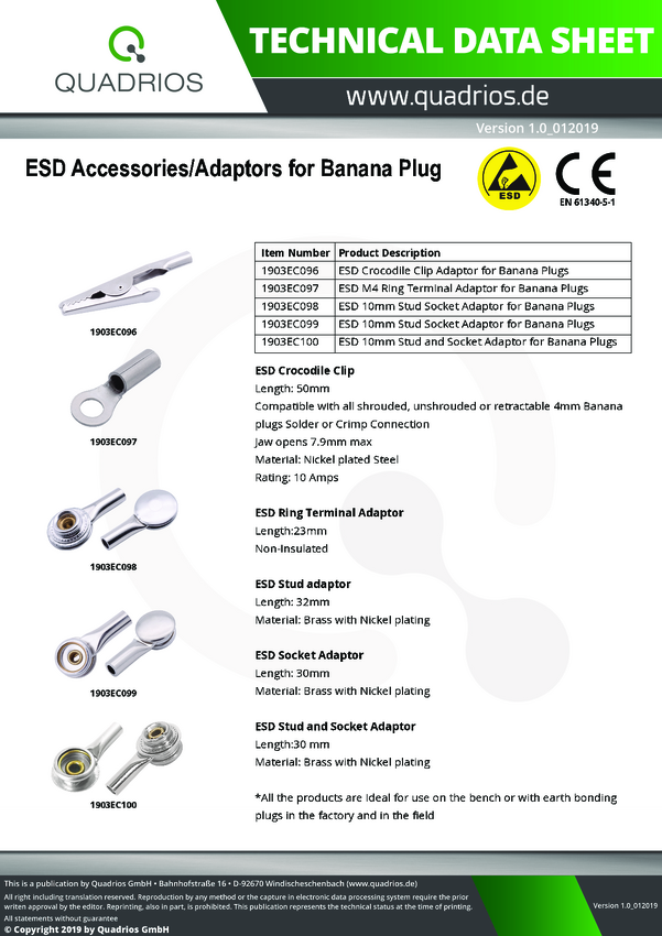 Quadrios Adapter ESD złącze żeńskie, zacisk krokodylkowy