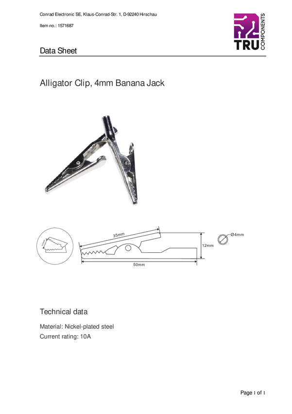 TRU COMPONENTS CONCROC-BA Adapter ESD zacisk krokodylkowy, złącze żeńskie bananowe