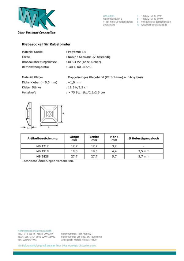 WKK 11950071 Podstawa montażowa przykręcany, samoprzylepny 11950071 splotka 4-krotna, stabilność UV czarny 1 szt.