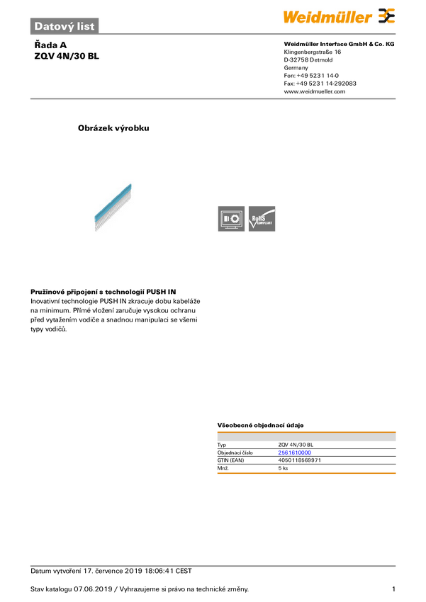 Weidmüller 2561610000 Łącznik krzyżowy 5 szt.