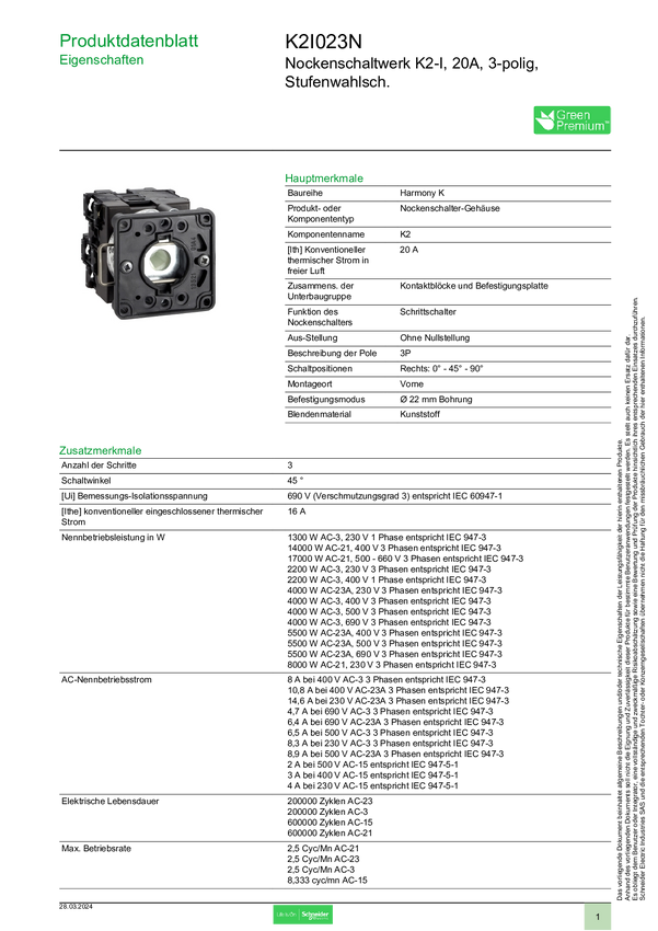 Schneider Electric K2I023N Przełącznik krzywkowy 1 szt.