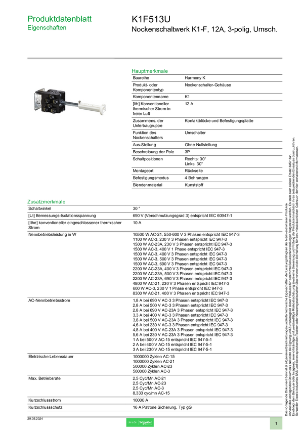 Schneider Electric K1F513U Przełącznik krzywkowy 1 szt.
