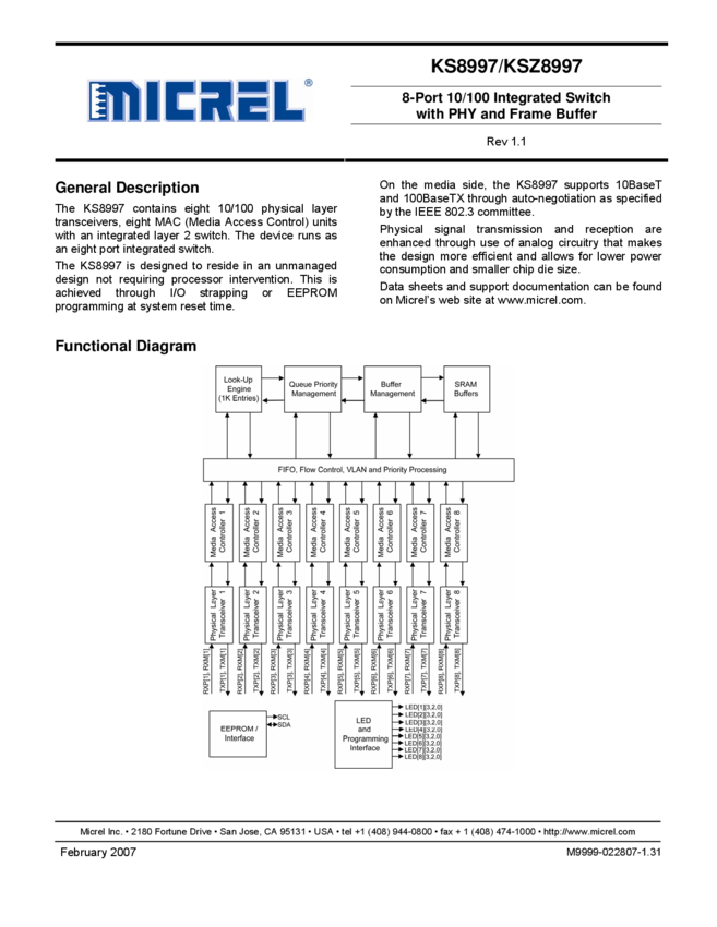 KS8997/KSZ8997 - 8-Port 10/100 Integrated Switch with PHY and Frame Buffer (11/09/2015)