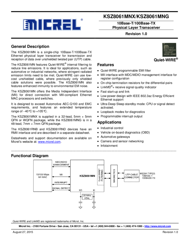 KSZ8051MNLU/RNLU - 10Base-T/100Base-TX PHY