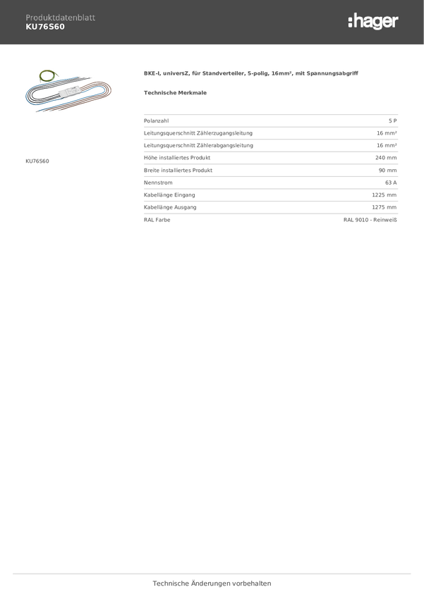 Hager KU76S60 Moduł przyłączeniowy 1 szt.