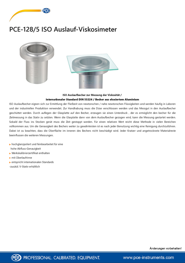 Kubek przepływowy do pomiaru lepkości PCE Instruments PCE-128/5 1 szt.