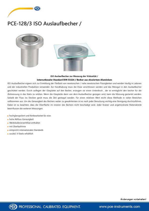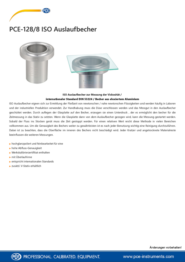 Kubek przepływowy do pomiaru lepkości PCE Instruments PCE-128/8 1 szt.