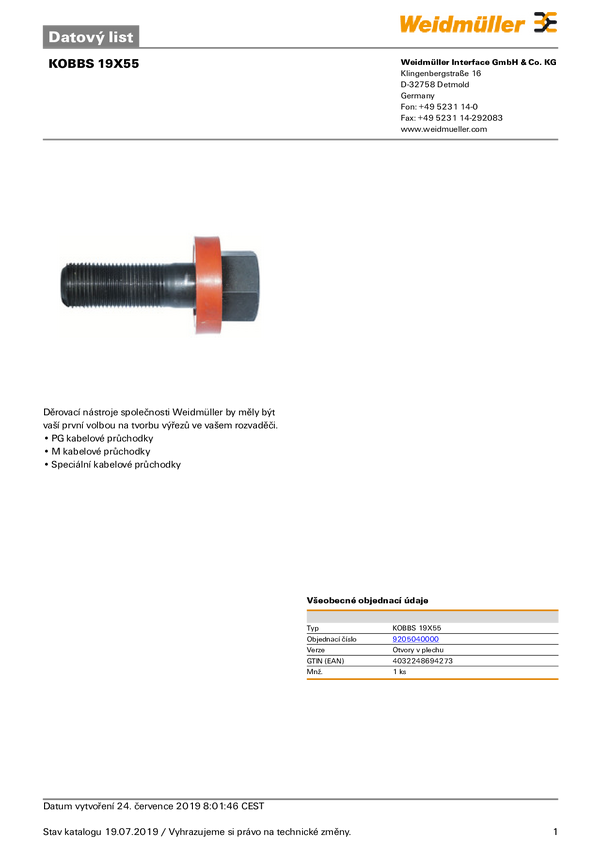 Śruba dociskowa z łożyskiem kulkowym 19,0 x 50,0 mm Weidmüller 9205040000