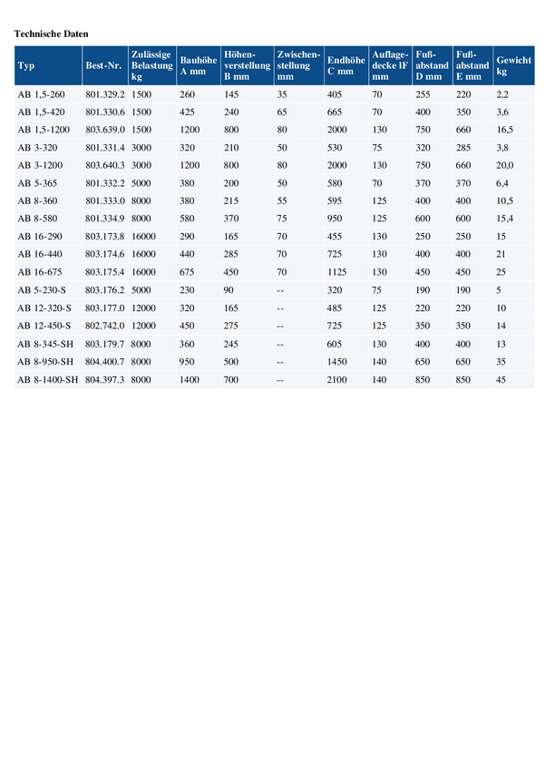 Podpórka Kunzer AB 16-675, 16 t, Wysokość robocza: 67.5 - 112.5 cm