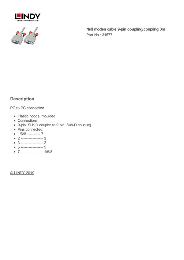 kabel port szeregowy LINDY LINDY Nullmodem-Kabel 9 pol. Kupp./Kupp. 31577, 3.00 m