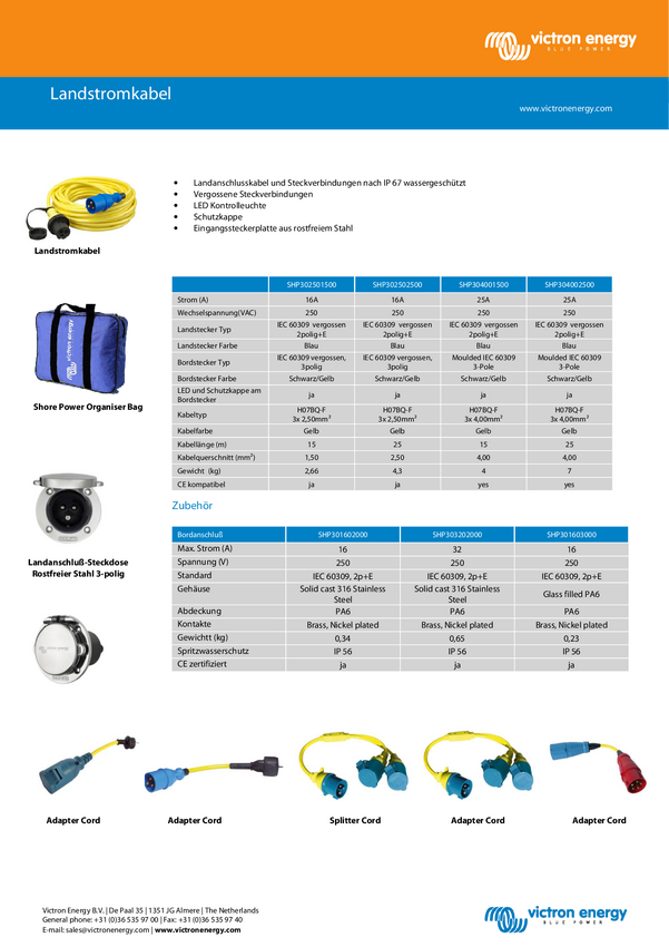 Kabel adaptera Victron Energy SHP307700220 Schutzkontakt-Stecker auf CEE Kupplung Długość kabla 2 m