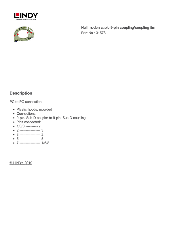 kabel port szeregowy LINDY LINDY Nullmodem-Kabel 9 pol. Kupp./Kupp. 31578, 5.00 m