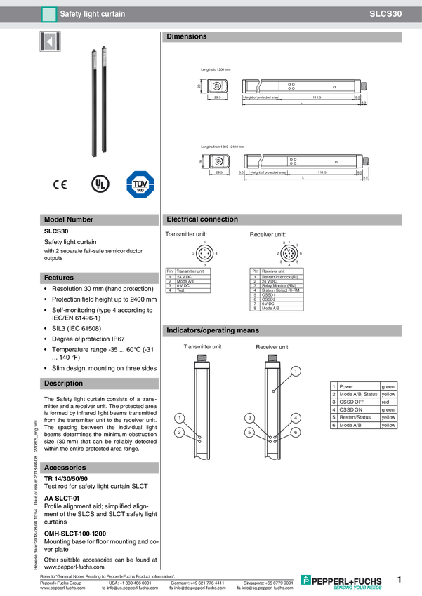 Pepperl+Fuchs Kurtyna bezpieczeństwa SLCS30-1400-R 24 V/DC