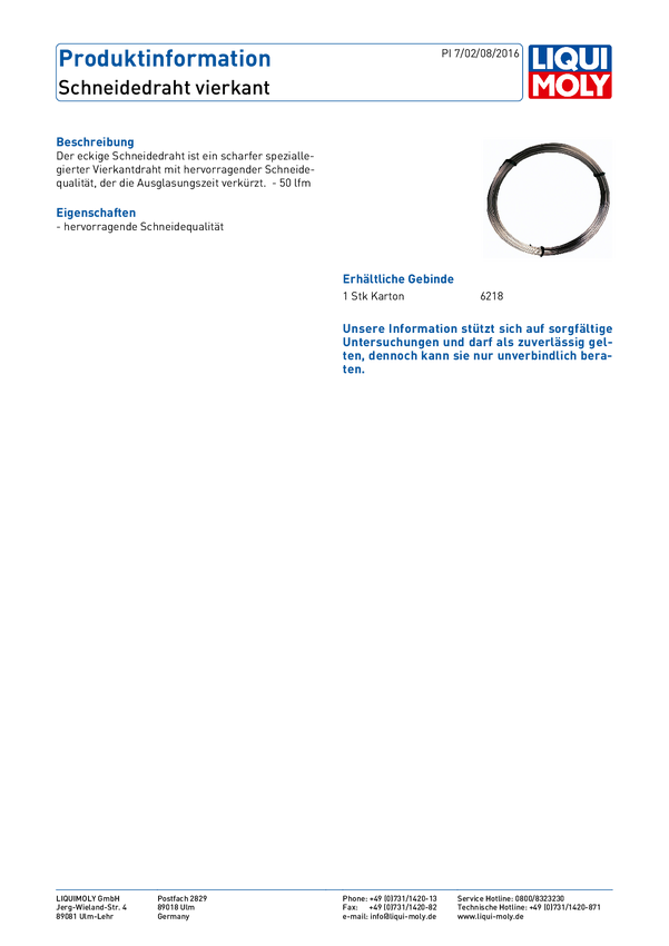 Drut do cięcia kwadratowy Liqui Moly 6218, 50 m