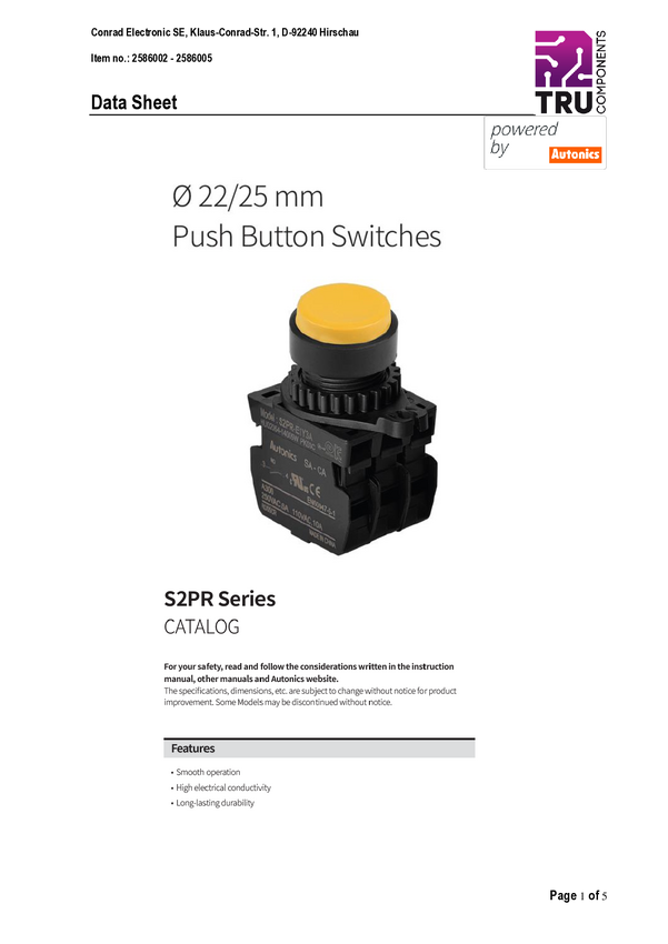 TRU COMPONENTS TC-10344016 S2PRS-P1R Przycisk kwadratowy czerwony 1 szt.