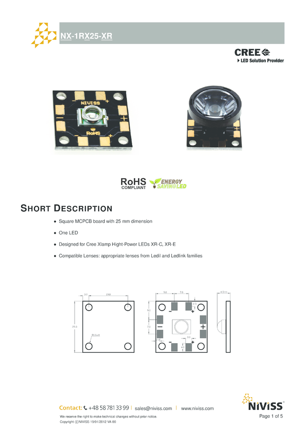 Moduł 1x LED Cree , jasność Q5- 107 lm/350 mA , - barwa WG (ok.5700-6350K), czarna soldermaska, kwadrat 25 x 25 mm