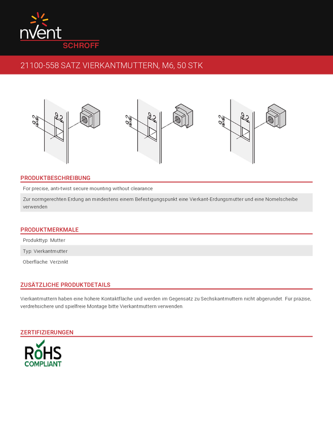 Nakrętka kwadratowa nVent SCHROFF 21100558 21100558, 1 szt.