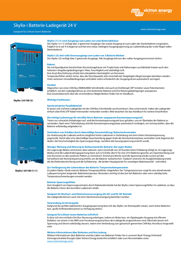 Ładowarka akumulatorów kwasowo-ołowiowych Victron Energy SKI024100000 24 V 100 A