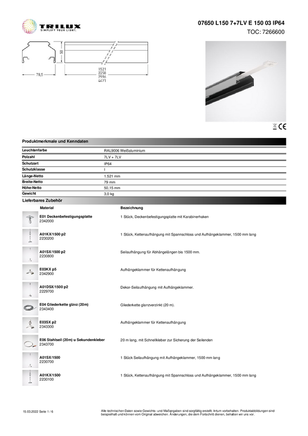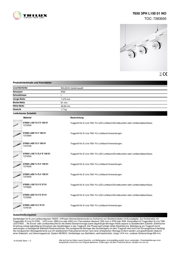 Szyna pomocnicza Trilux 07650 L150 #7266600 7266600, 1 szt.