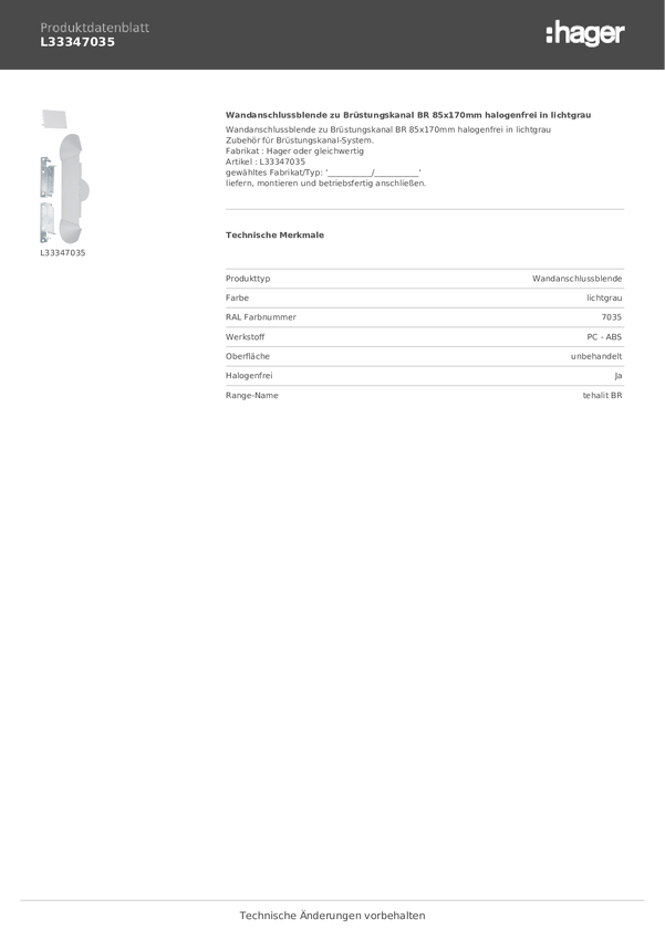 L33347035 Akcesorium do listw Tehalit Ścienny panel połączeniowy szary 1 szt.