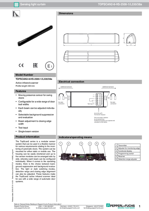 Kurtyna świetlna Pepperl+Fuchs TOPSCAN2-8-HS-2500-1/L330/38a 418035, 1 szt.