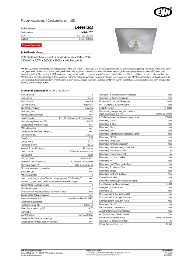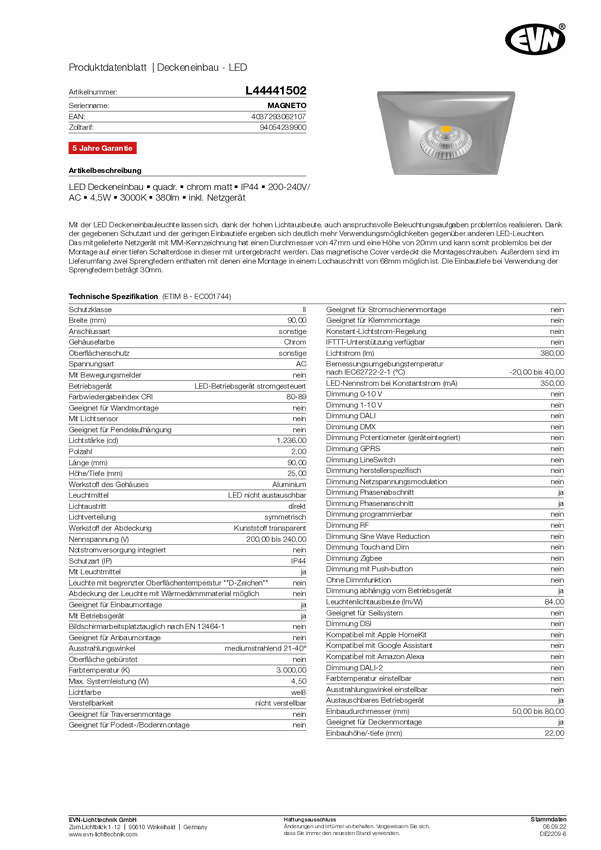 Oświetlenie wewnętrzne LED EVN L44441502 L44441502 5 W 380 lm