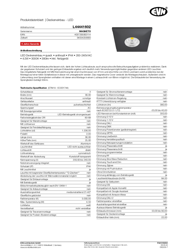 Oświetlenie wewnętrzne LED EVN L44440102 L44440102 5 W 380 lm