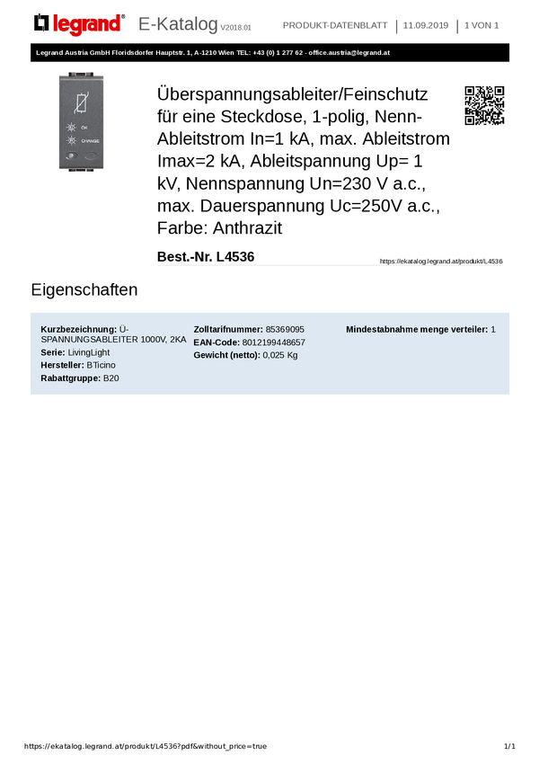 Legrand Ochrona przeciwprzepięciowa Living&Light antracytowy L4536 1 szt.