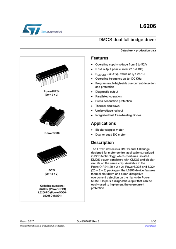 PowerSPIN: Dual DMOS Full Bridge Driver with Diagnostic