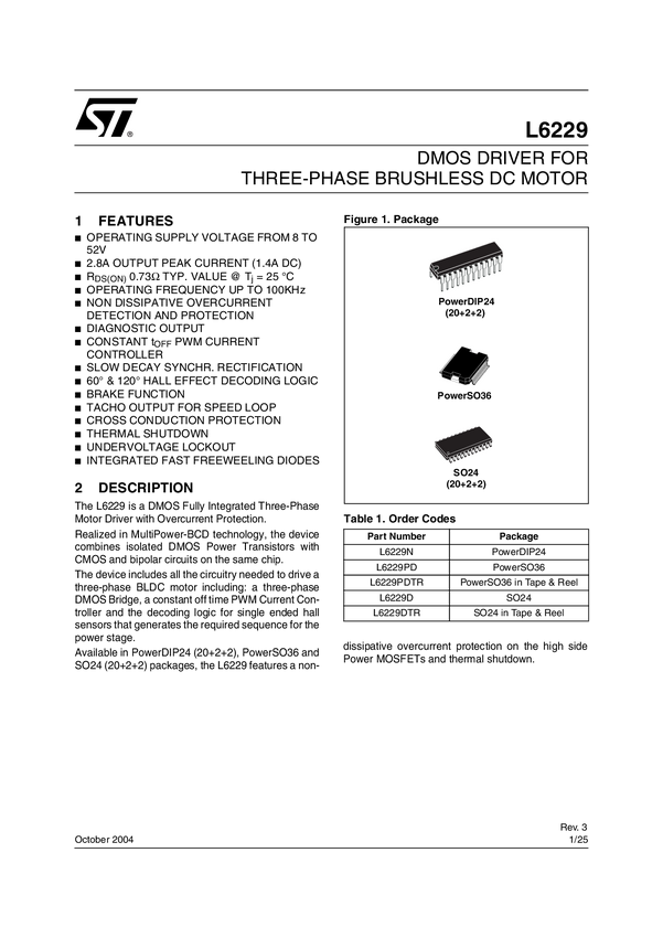 PowerSPIN: DMOS driver for three-phase brushless DC motor