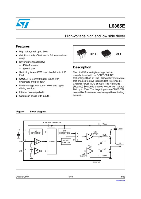 MOSFET DRVR 600V 0.65A 2-OUT Hi/Lo Side Half Brdg Non-Inv 8-Pin SO N T/R