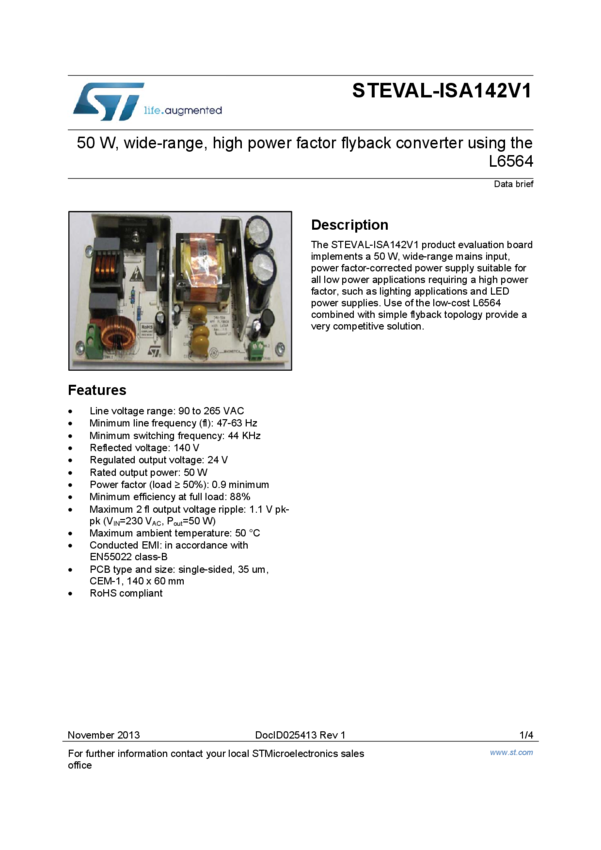 48 V - 130 W high efficiency converter with PFC for LED street lighting applications based on L6562 and L6599 - European version