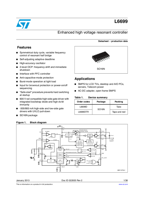 L6563H PFC Controller and L6699 Resonant Controller Demonstration Board
