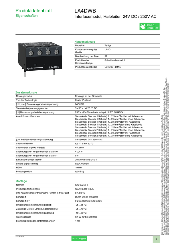 Schneider Electric LA4DBL Akcesorium do wyłącznika mocy 1 szt.